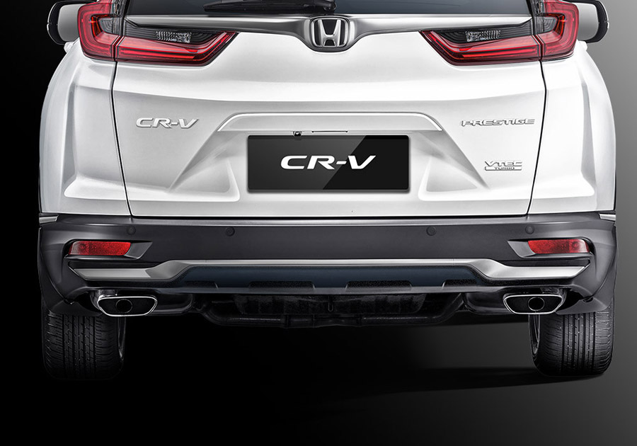 Tampilan baru pada New Honda CR-V dengan karakter SUV yang lebih premium terlihat dari New Front Bumper Design serta New Black Front Grille. Tampilan depan New Honda CR-V juga ditandai dengan New Sequential LED Turning Signal. Sementara dari belakang, New Honda CR-V gagah dengan New Rear Bumper Design, New Rear Smoked Tail Light, Dual Chrome Exhaust Pipe with New Finisher Design dan New Hand-Free Access Power Tailgate memungkinkan pengendara untuk membuka dan menutup pintu bagasi hanya dengan ayunan kaki, sehingga dapat memudahkan pengendara untuk memasukan atau mengeluarkan barang-barang yang banyak tanpa sentuhan tangan. Sementara sisi samping semakin menawan dengan New Alloy Wheel 18" berdesain agresif.
